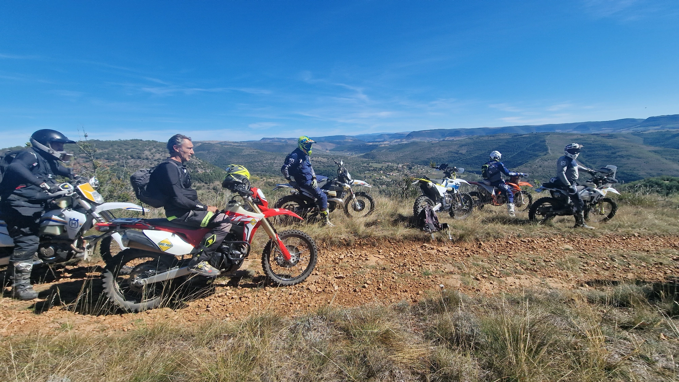 Première immersion off-road. Terrain facile, rythme tranquille, idéal pour apprendre à maîtriser sa moto en dehors de la route.